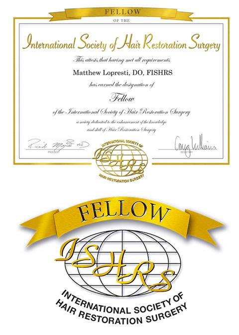 Dr. Matthew Lopresti, our Chief Surgeon, has been honored as a Fellow of The International Society of Hair Restoration Surgery (ISHRS), one of the highest distinctions in the field of hair restoration.